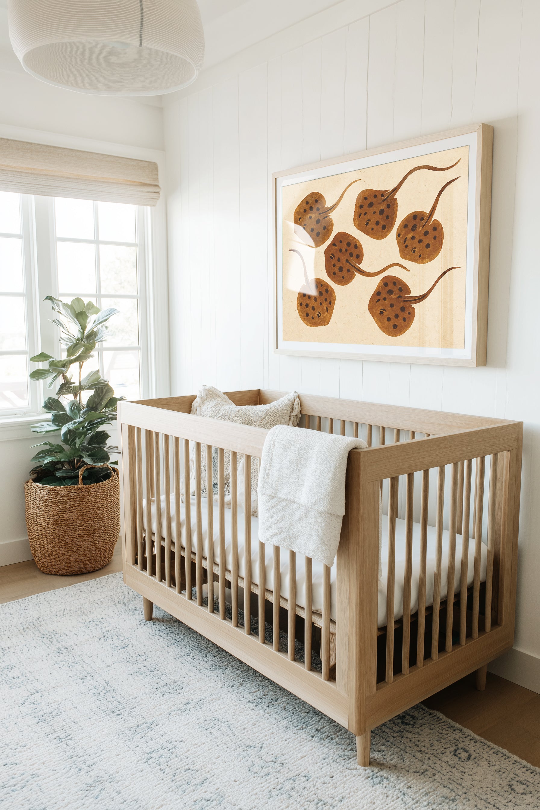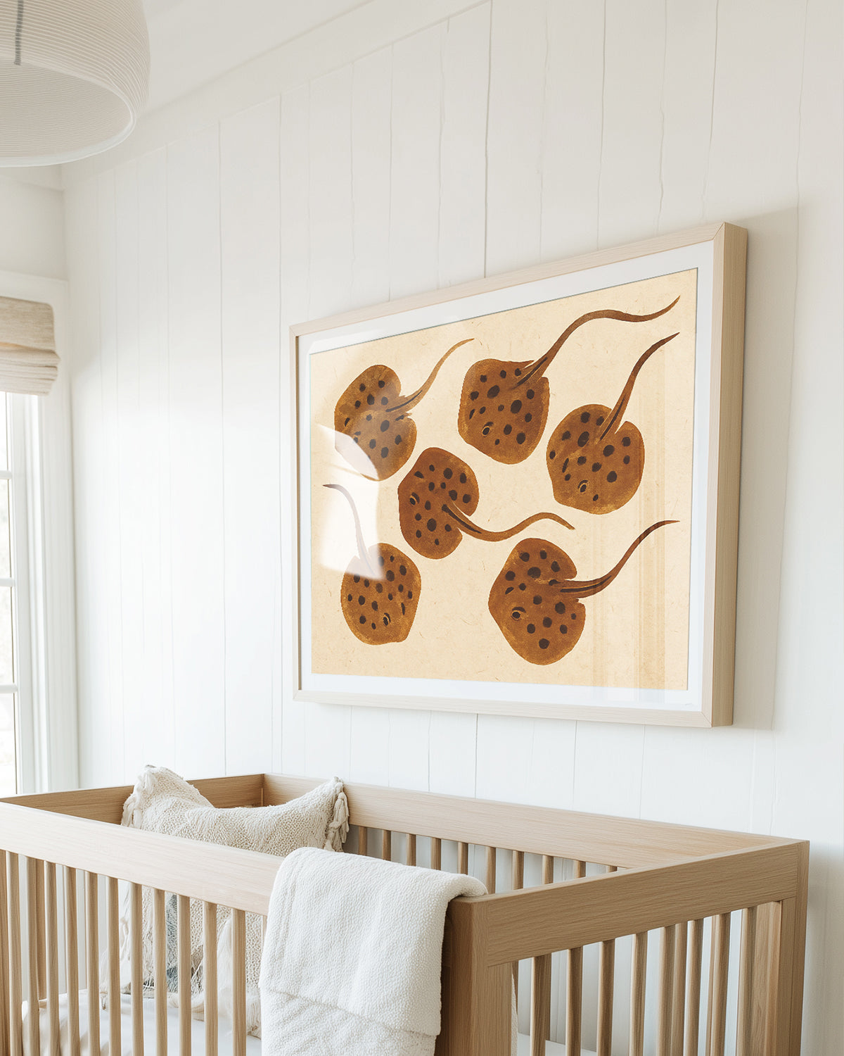Soft, earthy, and beautifully minimalist, this high-quality framed art print features a gentle school of baby stingrays illustrated in warm sepia tones. The organic textured background and flowing lines evoke a calm, natural elegance, making it a perfect addition to coastal homes, beach-inspired nurseries, or serene modern interiors. This piece brings a sophisticated coastal touch while maintaining a soothing, understated aesthetic. Ideal for anyone looking for ocean-inspired wall art, neutral coastal décor, or unique marine-life artwork that feels timeless and refined.